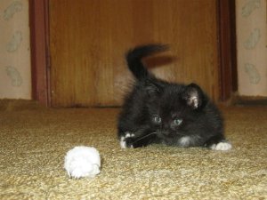 Отличаемся изящной черной окраской с белыми подпалинами (все в маму). Общительны, благородны, отнюдь не глупы.