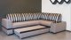 •Чтобы разложить диван, нужно всего лишь выдвинуть выкатную часть на себя, затем за петлю движение вверх и на себя поднять мягкий элемент выкатной части.