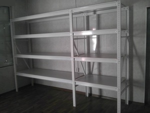 Стеллажи прочные, грузового назначения. Сделаны из сортовой стали и имеют полимерное покрытие.