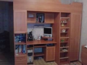 Продаем потому что нужна двухярусная кровать. Матрас, платяной шкаф, шкафы для белья, книг, полноценное рабочее место.