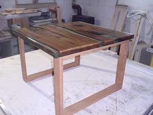 журнальный столик размер 67х64 см, высота 46 см. столешница-карагач и ювелирная смола, лак. подстолье дубовое. изготовлю стол по Вашим размерам и эскизам.