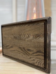 Деревянная разделочная доска от нашей мастерской будет не только украшение праздничного стола, но и не заменимой помощницей на кухни. Оборотная сторона деревянной разделочной доски ровная и подходит для нарезки.