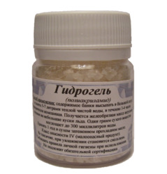 Упаковка ПЭТ банка 40 мл, в ней 36 грамм гидрогеля, который может впитывать до 8-10 литров воды.