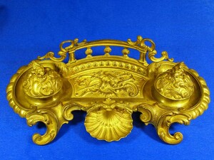 Продаётся из частной коллекции в Ульяновске антикварный чернильный прибор середины 19 века. Бронза. Отличное состояние, без реставраций. Размер 34х16 и высотой 10 см.