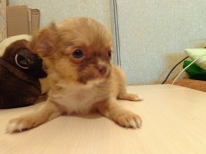 Продается мальчик чихуахуа, д/ш, возраст 1,5 месяца, окрас рыже-коричневый с белым, с хорошей породной головой, мини, прикус N, зубы 6х6, приучен к чистоте, документы РКФ.
