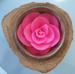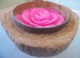 Яркий цветок в подсвечнике-лодочке из натурального кокосового ореха.