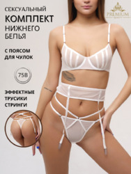 Красивый сексуальный комплект нижнего белья — это базовая вещь женской одежды, которая должна быть у каждой! Полупрозрачный и нежный материал едва прикрывает тело, оставляя место для смелых фантазий. Вы и Ваша половинка будете в восторге! Бюстгальтер балконет с мягкой чашкой на косточках без пуш-ап хорошо поддерживает бюст. У корсетного лифчика несъемные регулируемые лямки. Женские трусы эротик стринги со средней посадкой декорированы стрепами — эластичными лентами, имитирующими портупею. Соблазнительный образ завершит сексапильный пояс эротик для чулок. Белый свадебный эротический прозрачный комплект нижнего белья отлично подойдет как белье для невесты или как повседневное, для пикантной фотосессии или романтического вечера. Легкая и качественная ткань подарит комфорт, незаметна под одеждой. Изящный комплект станет лучшим подарком для любимой жены или девушки на день рождения или годовщину, а также для будущих мам. Благодаря регулируемым бретелям подойдет для высоких и невысоких.