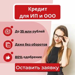 «Помощь в кредитовании для бизнеса, работаем со стоп -факторами и любой КИ. гарантированное одобрение, работаем без предоплат и комиссий, можно без оборотов по расчетному счету, крупные суммы до 35 млн, минимум документов все подготавливаем сами, без имущества и поручителей,
