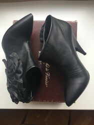 Ботильоны б/у (одевались 1 один раз в ресторан на автомобиле ) кожаные чёрные женские короткие Kalliste Италия размер 39 кожа мягкая натуральная украшены принт декор цветы розы каблук шпилька широкий 10 см внутри и подошва кожа демисезонные весенние осенние полусапожки полусапоги ботинки полуботинки сапоги сапожки полуботильоны Новая коллекция весна лето осень зима новинки Доставка отправка товара вещей по Москве России и пересылка почтой и транспортной компанией на ваш выбор платная за ваш счет по всему миру или самовывоз метро Жулебино Лермонтовский проспект Котельники Оплата на карту Сбербанк или наличными при встрече