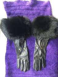 Перчатки новые versace италия кожа черные мех лиса песец двойной размер 7 7,5 44 - Москва