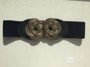 Пояс ремень резинка ткань металл под золото бронзу кожзам 4446 черный аксессуар - Москва