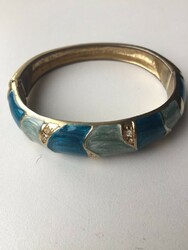 Браслет на руку стразы сваровски камни swarovski кристаллы белые голубой синий покрытие перламутровый лак металл под золото раздвижной бижутерия украшения на руку аксессуар