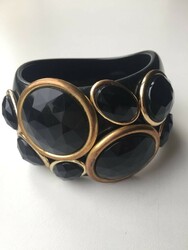 Браслет широкий на руку новый женский Италия круглый крупный чёрный украшен камни большие крупные чёрные в оправе металл под золото Стразы сваровски кристаллы Swarovski материал качественный плотный пластик вечерний Бижутерия аксессуары украшения Доставка по всему миру и самовывоз Москва