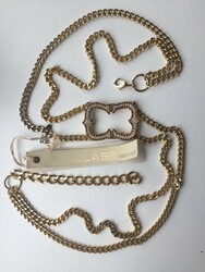 Пояс цепи новый женский Roberto Cavalli Class Италия оригинал металл под золото украшен камни белые оранжевые Стразы сваровски кристаллы Swarovski размер средний не для полных цепочки двойные спереди дизайн брошь бляха Бижутерия украшения аксессуары