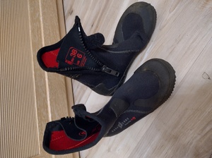 Ботинки неопреновые для сплава, 5 мм, размер 38 (европейский), российский 36-37. Использование — 1 сплав в Карелии, поход на катамаранах 1-2 категории сложности. Отличное состояние