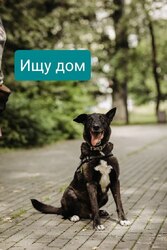 Когда-то был домашним, знает команды, очень послушный, понимает, что от него хотят, и быстро обучается. На прогулке идет рядом, не тянет. Игривый, на улице любит играть с палкой (перетягивать или бегать за ней). А еще он потрясающий пловец.