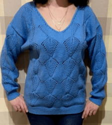 Продаётся Стильный пуловер с ажурным узором «Листик» — модный тренд сезона. Данная модель идеально подходит как для зимы, так и до конца осени за счёт ажурного узора. Размер 46-48.