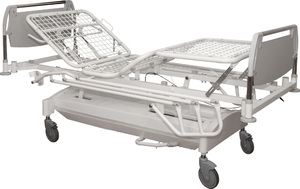 Изменение углов наклона спинной и бедренной секций осуществляется с помощью газовых пружин. Изменение углов наклона ножной секции осуществляется с помощью механизмов «Растомат». Наличие положений «Тренделенбург», «АнтиТренделенбург» и «Кардиологическое кресло». Четырехсекционное ложе выполнено из съёмной стальной сетки или ABS-пластика. Быстросъёмные торцевые спинки оснащены вставками из HPL-пластика. Кровать установлена на 4 колёсных опорах диаметром 150 мм с тормозом.