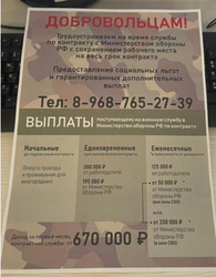 Доход за первый месяц контрактной службы от 670 000 руб.