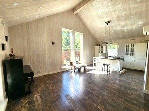 Баня — северное бревно, отопление — конвекторы, эксклюзивная деревянная мебель ручной работы из дуба, бытовая техника сименс и нефф. На первом этаже кухня-гостинная, ан втором этаже комната для отдыха.