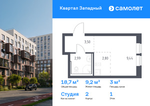 Строим кварталы для жизни с заботой о будущем. Предлагается квартира студия комфорт-класса 18,73 кв. м в корпусе 2 на 1 этаже, в ЖК «Квартал Западный»