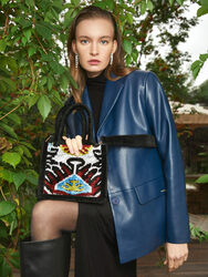 Сумка-тоут мини классической прямоугольной формы изготовлена из натуральной шёлковой ткани, сотканной и окрашенной вручную. Можно носить в руках и на ремне через плечо.