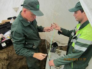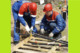 Прокладка вставки и монтаж муфт для восстановления кабеля.