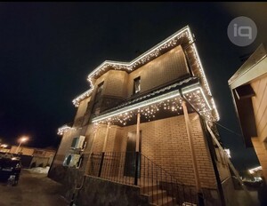 Новогоднее освещение домов в Москве и Московской области, украшение дома к Новому году гирляндами, бахромой и неонов от компании SvetIQ.