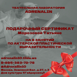подготовила к Новому году именные Подарочные сертификаты на 6, 8 и 10 занятий на зимние групповые и индивидуальные курсы «Эмоционально-пластическая выразительность, свободный танец»