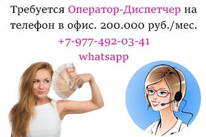 Требуется девушка на вакансию Оператор-Диспетчер. Офис в Москве. Работа несложная. Зарплата 200 тысяч ежемесячно. Пишите в whatsapp.