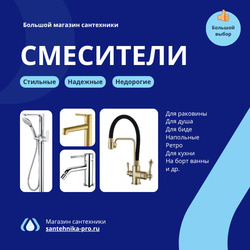 Интернет-магазин Santehnika-Pro.ru предлагает качественные смесители по выгодным ценам. В наличии модели для ванной, кухни, душа и раковин — от эконом-класса до премиума.