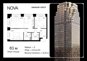 Строим кварталы для жизни с заботой о будущем. Предлагается 2-комнатная квартира премиум-класса 60,97 кв. м в корпусе 1 на 24 этаже, в ЖК «NOVA»