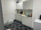 Кабинетная планировка, на полу плитка и ковролин, одна мокрая точка.