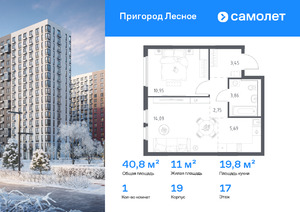 Строим кварталы для жизни с заботой о будущем. Предлагается 1-комнатная квартира комфорт-класса 40,79 кв. м в корпусе 19 на 17 этаже, в ЖК «Пригород Лесное»