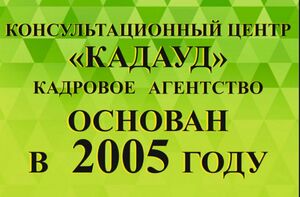 Агентство «КАДАУД» создано в 2005 году. На протяжении всех лет работы цель Кадрового агентства «КАДАУД» — качественный подбор персонала в короткие сроки. Мы за прозрачные и добропорядочные отношения с Клиентами, поэтому нас связывают долгосрочные проекты. Сотрудничество с профессионалами агентства «КАДАУД» – это экономия Ваших финансовых ресурсов, сил, времени. Возможность избежать неприятных ситуаций, вызванных неправильным выбором кадров. Агентство «КАДАУД» станет Вашим надежным и верным соратником. Мы доказали это делом и временем! Мы всегда готовы к сотрудничеству на взаимовыгодных условиях!