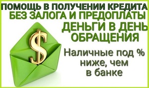 Помощь в получении кредита для каждого, кто к нам обратится. Кредитная история других банков, долги, просрочки — на решение по кредиту не влияет. Главным условием является отсутствие задолженности перед моим банком. Без обеспечения, поручительства, предоплаты в любом ее проявлении. Оформляю кредит без кредитного скоринга, поэтому гарантирую результат. Получение официально в отделении банка с заключением договора. Все честно и законно. Работаем в регионах РФ. Без выходных и праздников. Просьба писать на электронную почту, WhatsApp или Telegram