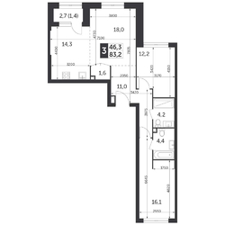Общая площадь, м²:83.2