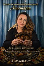 Анастасия — ясновидящая и таролог, работающая с различными жизненными ситуациями. Принимает в Москве лично, а также проводит дистанционные консультации. Все обращения рассматриваются индивидуально и строго конфиденциально.