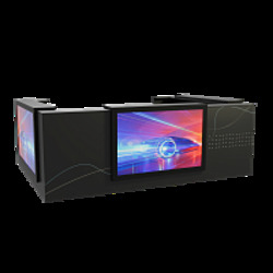 Ресепшн сенсорный «Панорама» — стойка ресепшн на 1 рабочее место с 3-мя экранами 43" для демонстрации контента: навигация и т. д.