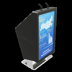 Трибуна для публичных выступлений и проведения презентаций перед аудиторией. Все необходимое оборудование (компьютер, микрофон, LED – экран, сенсорный терминал) объединены в едином корпусе, что упрощает установку и настройку устройства перед выступлением.