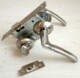 2. Ручки с защелкой с фиксацией защелки. В комплект входят: две ручки, четыре декоративные накладки, накладка для защелки, механизм защелки, мех0анизм фиксации защелки, ручка фиксации. Материал — сталь. Имеется в наличии два комплекта.