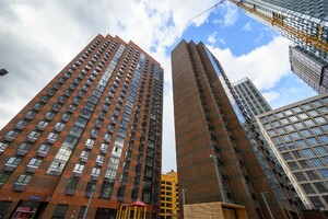 Интенсивный пешеходный и автомобильный трафик, густонаселённый район с современной жилой застройкой.