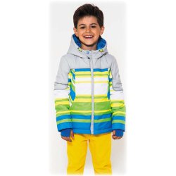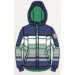 Куртка комбинированная. С разноцветными полосами. Застёжка — молния. Отстёгивающийся капюшон с кулиской. Боковые прорезные карманы, оформленные планками. В рукавах куртки предусмотрены удлинённые вязаные манжеты с прорезью для большого пальца. Можно не надевать перчатки.