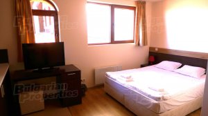 Квартира-студия площадью 37.04 кв. м. Здание построено в 2006. Локальное отопление. В квартире ламинированный пол, окна пвх, покрашенные стены и терракотовый пол. Недвижимость включает следующую мебель и оснащение: мебель, оборудованная ванная комната и телевизор. Из основных коммуникаций обеспечены электричество, вода и канализация. Ванная комната с туалетом, терраса, комплекс закрытого типа, общие части с отделкой люкс, заасфальтированная дорога, интернет, интернет Wi-Fi в здании и кабельное телевидение обеспечят дополнительный комфорт для пользования. Виды на горы открываются из самой квартиры, раскрывая часть красот живописной Болгарии.