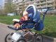 Б/У, в отличном состоянии, сине-голубая, из двух блоков (люлька и прогулочная), камерные колеса + отдам конверт овчинный (зимний), очень теплый одевается на коляску, удобно для зимы (синий под цвет коляски).
