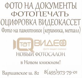 Новый фотосалон Татвидео в «Новом книжном» на Варшавке 82.