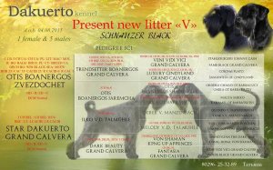 Питомник DAKUERTO (Беларусь) предлагает щенков породы миттельшнауцер, редкого, элегантного черного окраса, от титулованных родителей, с хорошей выставочной перспективой. 5 мальчиков и 1 девочка.
