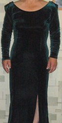 Размер 46-48, рост 170. Темно-зеленый бархат, б/у 1 раз, в отличном состоянии. Покупала в магазине за 3700 руб.